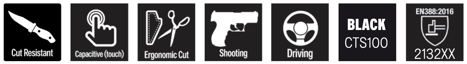 The CTS100 is cut resistant and can be used to operate touchscreen devices. A special cut resistant aramid material lines the palm of the CTS100, and the tips of the thumb and fingers needed for using capacitive devices are covered with special touchscreen compatible leather. With tough yet flexible materials on the back of the hand, this glove gives you extreme protection with amazing tactility and dexterity.