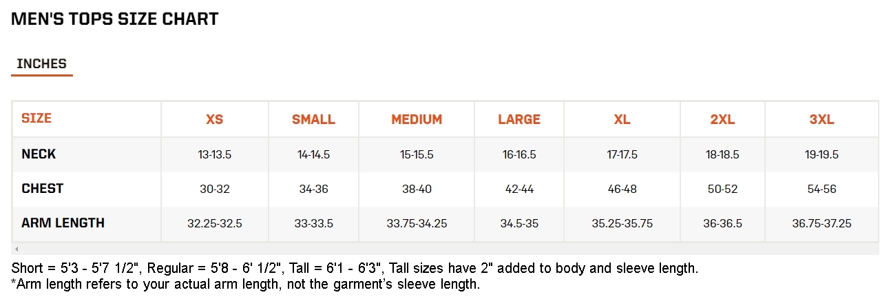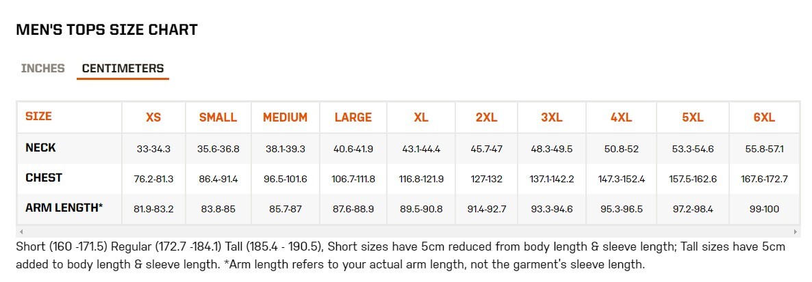 5.11 男上身尺碼表(Men's Tops Size Chart)