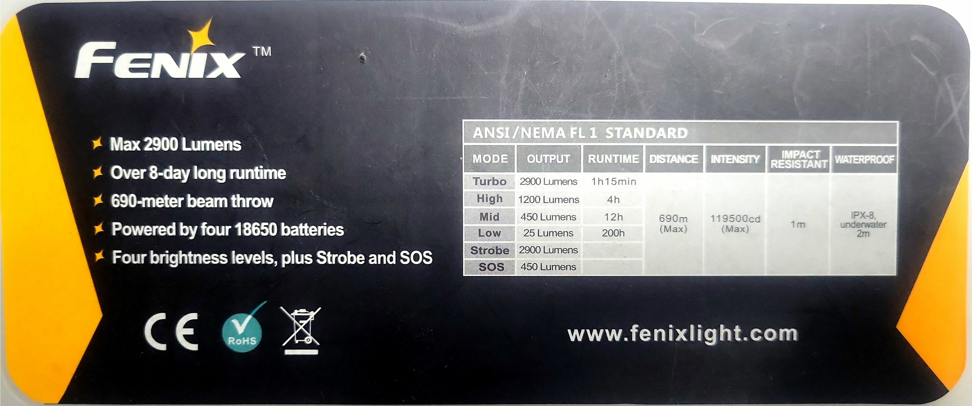 Fenix 2900LM LED Flashlight TK75 戰術手電筒
